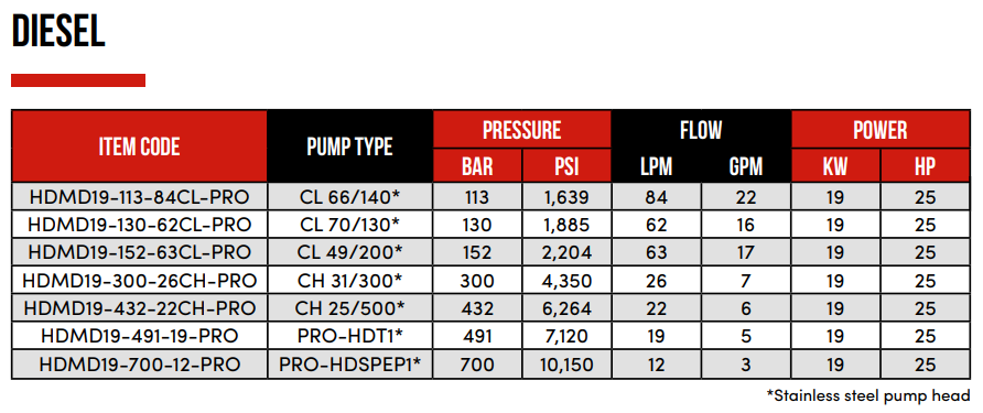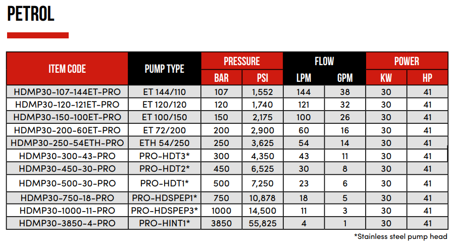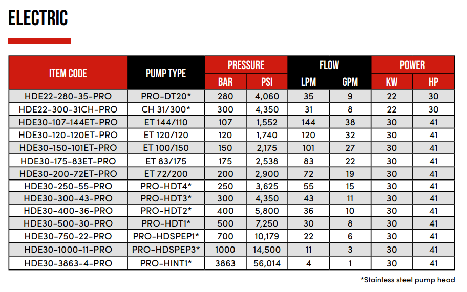 Contact PRO-Jetting if you can not find your desired pressure and flow combination. chances are that we can still build it (up to 37kW and 1500 bar)